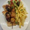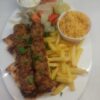 (Two Skewers Lamb Souvlaki, Fries, Salad, Tzatziki, Bulgur)