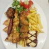 (One Skewer Pork Souvlaki, One Skewer Chicken Souvlaki, One Skewer Lamb Souvlaki, One Lamb Kebab, Two Sheftalia, Two Halloumi, One Sausage, One Greek Salad, Fries)